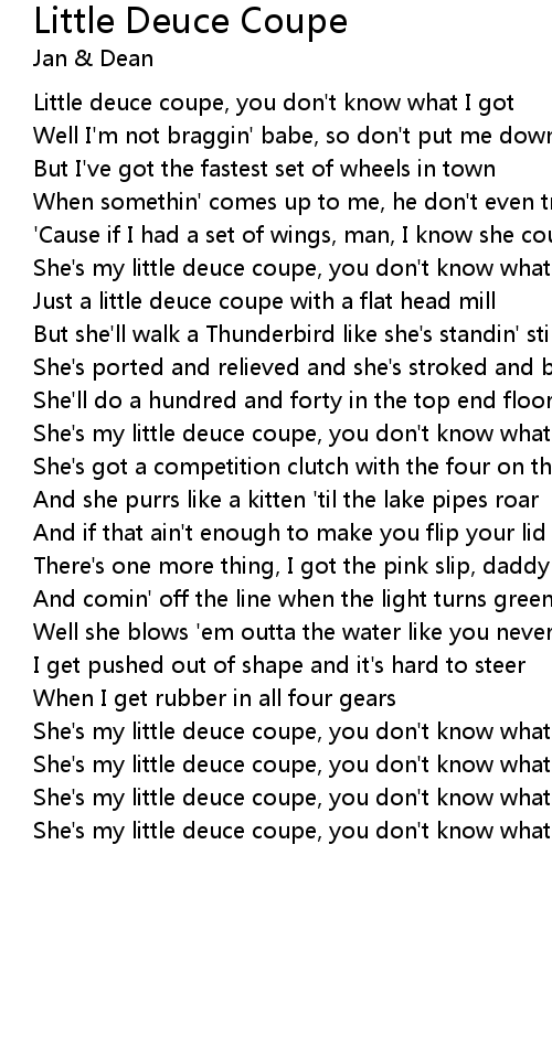 She's my little deuce coupe, you don't know what I got |