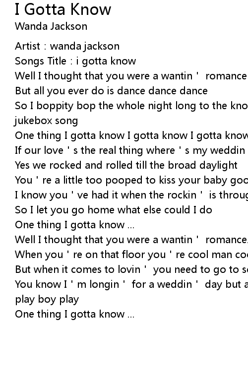 | Song | I Gotta Know |