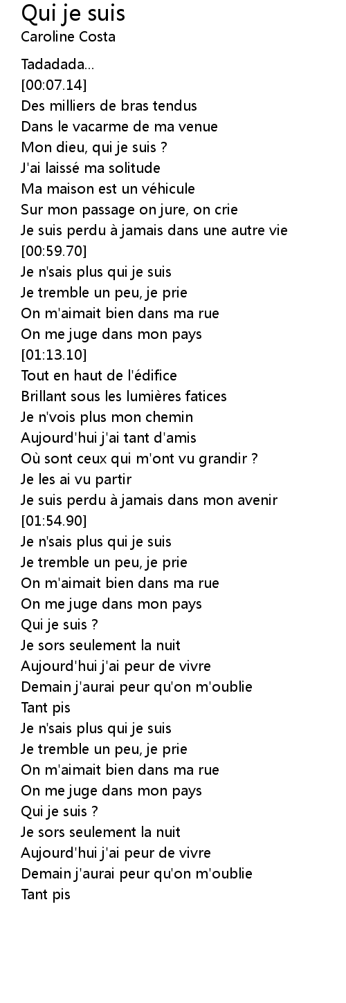 | [02:56.65] | Qui je suis ? |