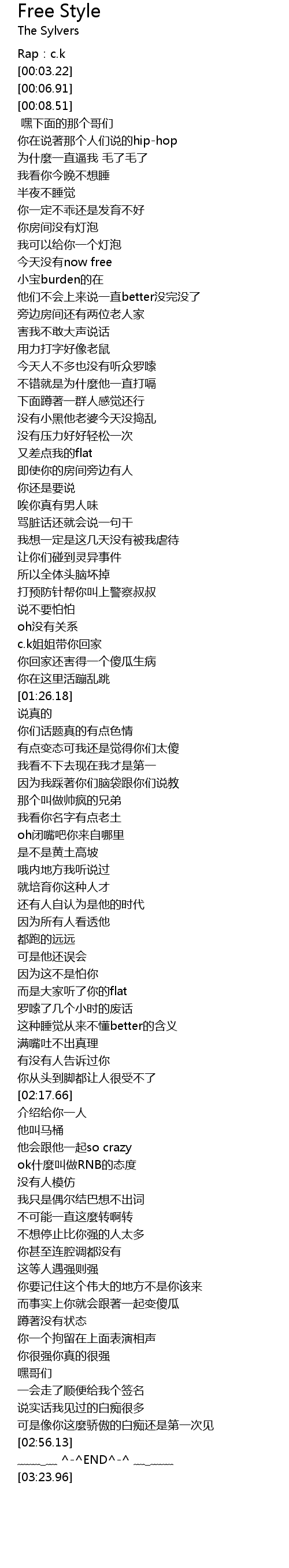 | [00:24.78] | 你在说著那个人们说的hip-hop |