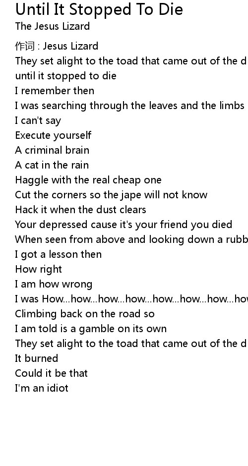 | They set alight to the toad that came out of the drain, it burned for a while until it stopped to die | |