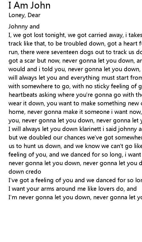 I will always let you down klarinett i said johnny and i, we got lost tonight, but we doubled our chances we've got somewhere to go, we've got devils chasing us to hunt us down, and we know we can't go like this from now, i've got a feeling of you, and we danced for so long, i want your arms around me, said never gonna let you down, never gonna let you down, but i will always let you down credo |