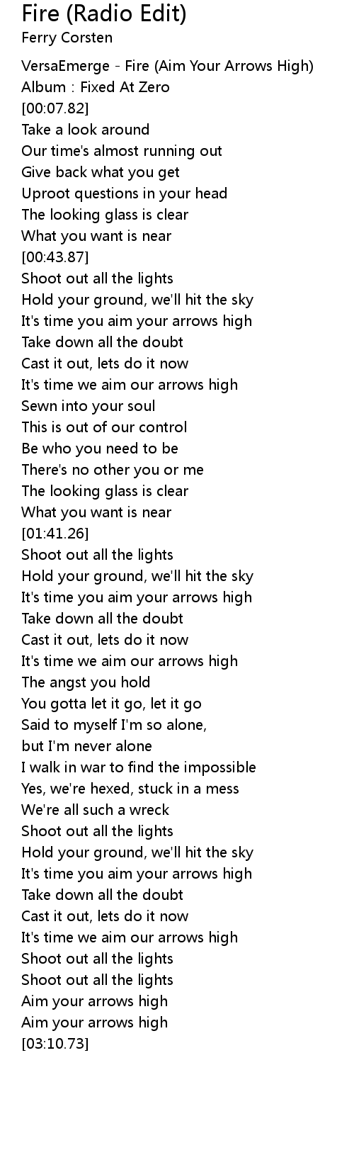 | [00:01.82] | VersaEmerge - Fire (Aim Your Arrows High) |