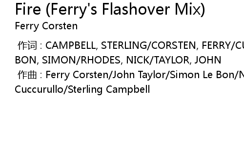 | Song | Fire (Ferry's Flashover Mix) |