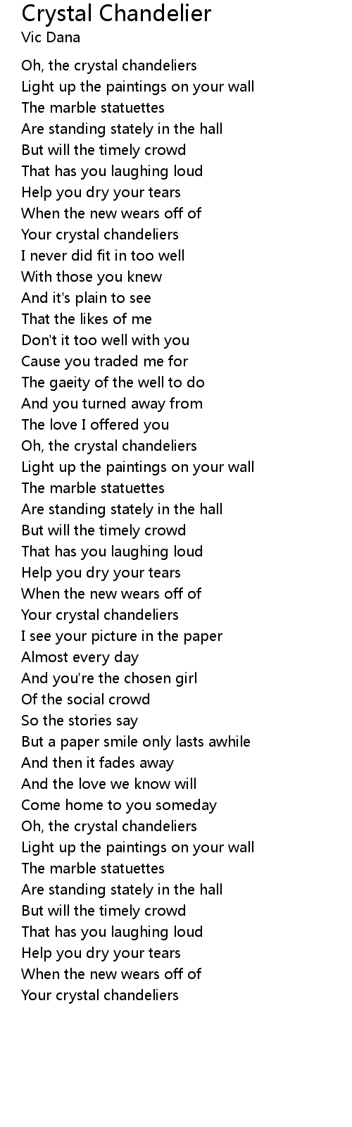 Oh, the crystal chandeliers |