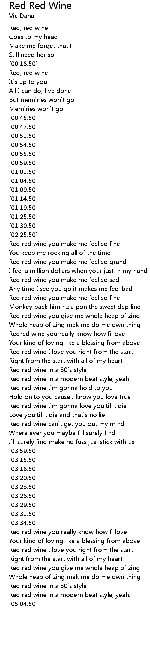 [04:19.50][03:26.50] Red red wine you make me feel so fine