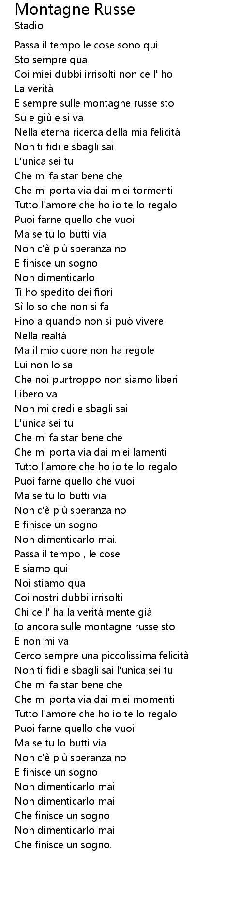 | Non ti fidi e sbagli sai l' unica sei tu | |