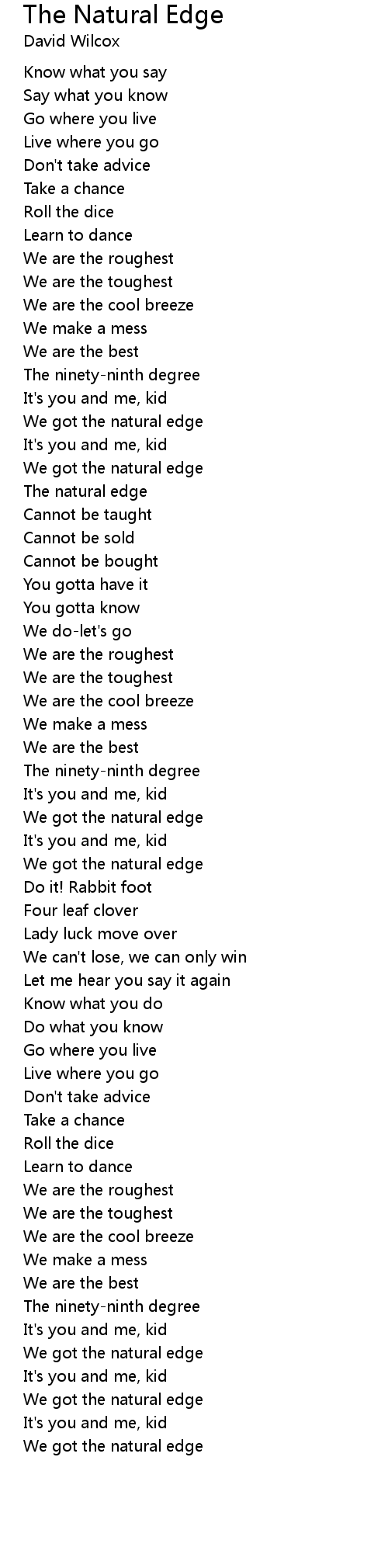 | Song | The Natural Edge |