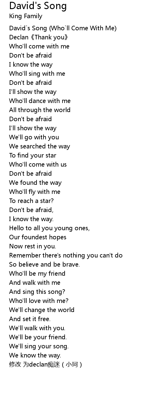 | [00:01.00] | David s Song Who ll Come With Me |
