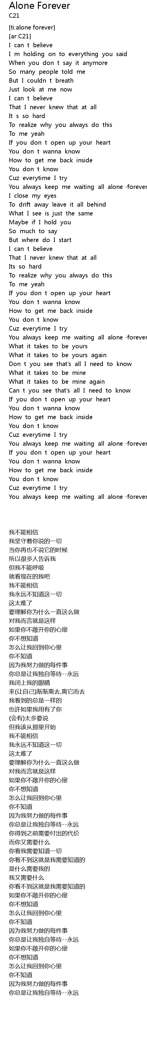 | [01:21.183] | You always keep me waiting all alone -forever |