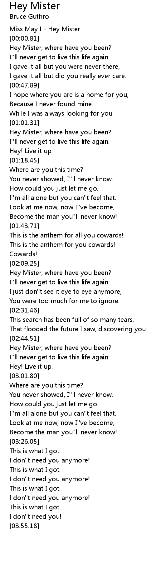 Miss May I - Hey Mister |