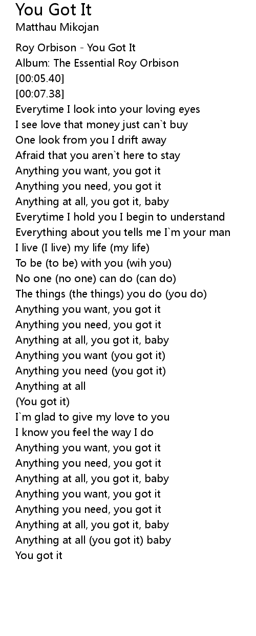 (You got it) |