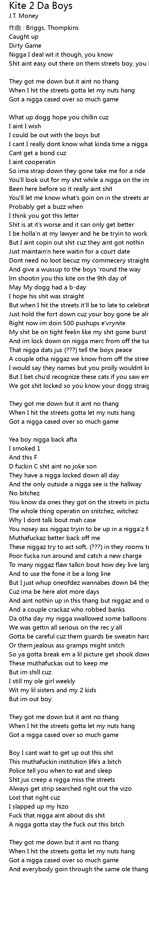 | When I hit the streets gotta let my nuts hang | |