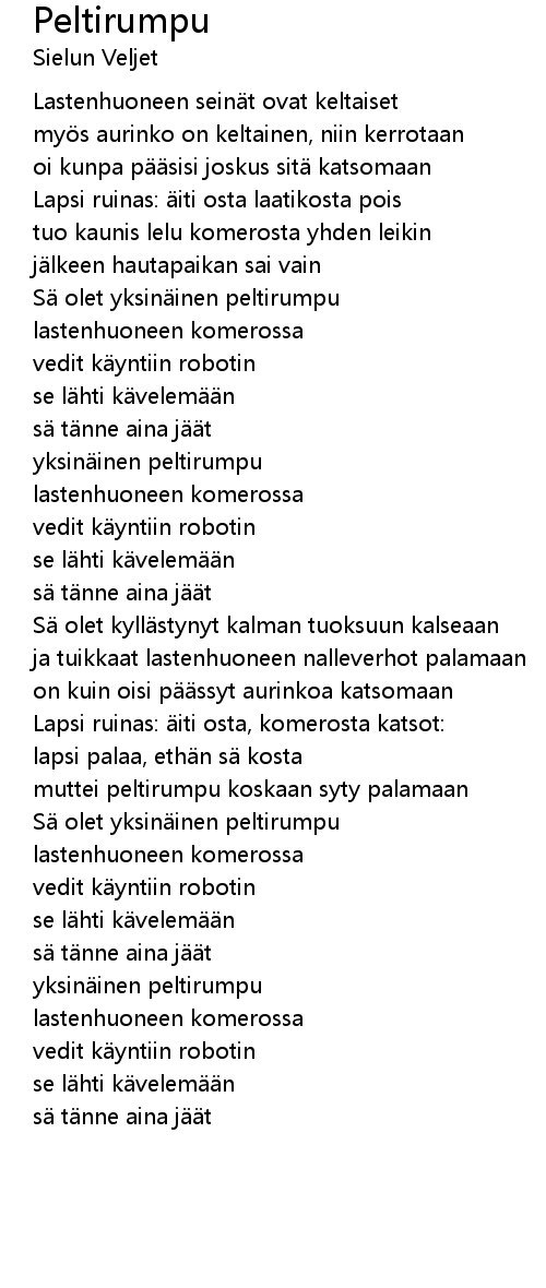 | S olet kyll stynyt kalman tuoksuun kalseaan | |