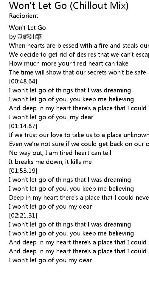 | [00:04.02] | Won' t Let Go |