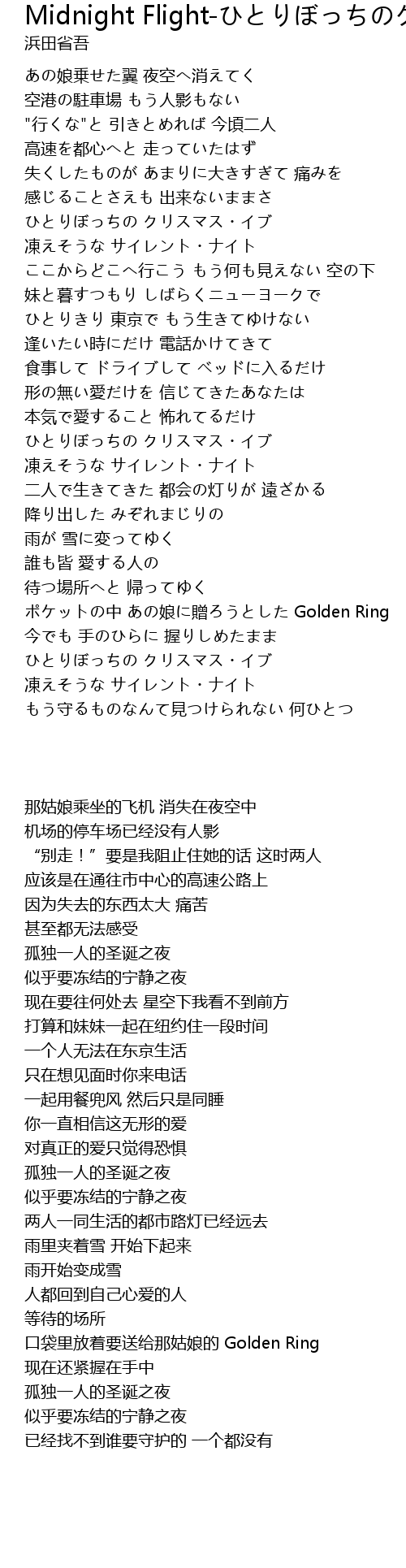 | [00:26.28] | あの娘乗せた翼 夜空へ消えてく |