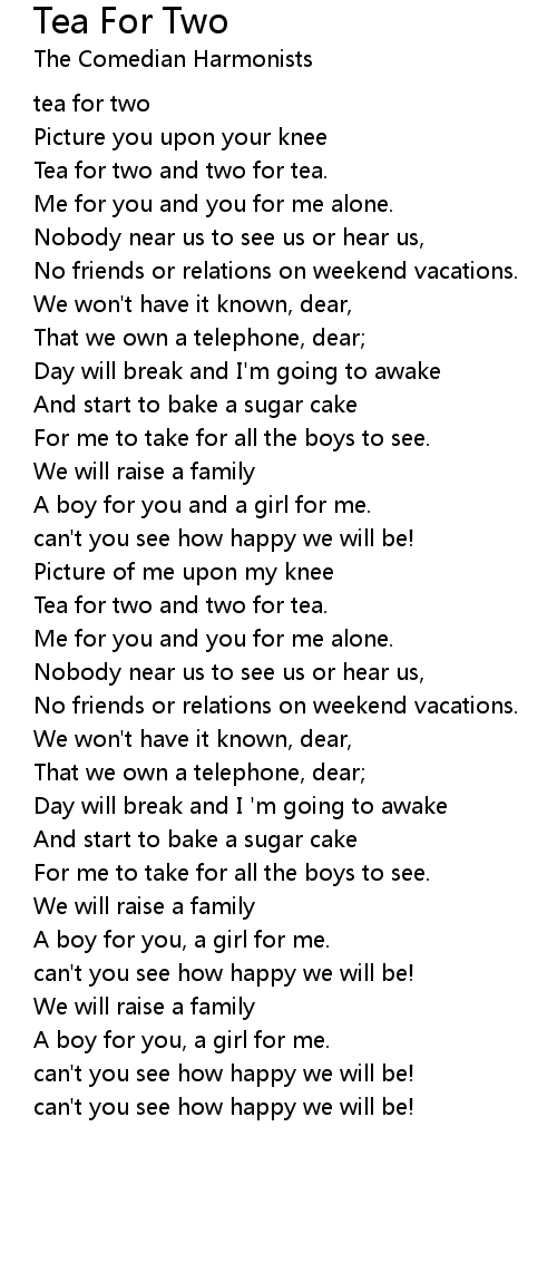 Tea for two and two for tea. |