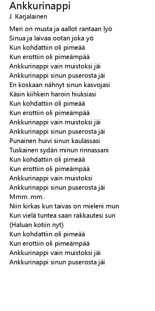 | Ankkurinappi sinun puserosta jäi | |