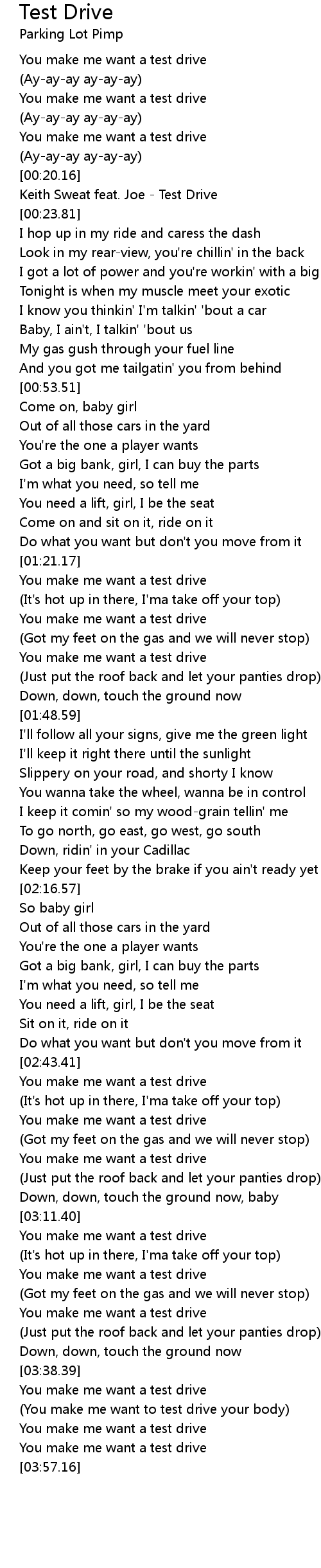 (You make me want to test drive your body) |