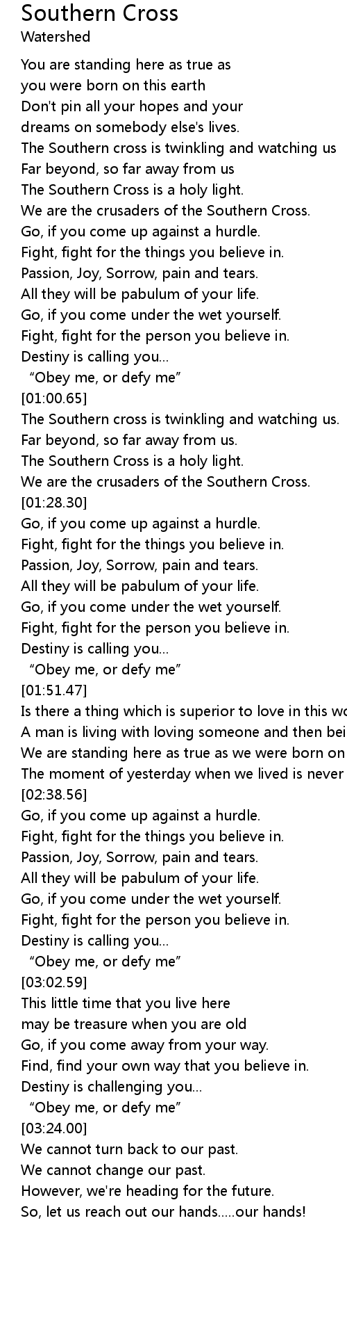 | [01:21.58] | The Southern Cross is a holy light. |
