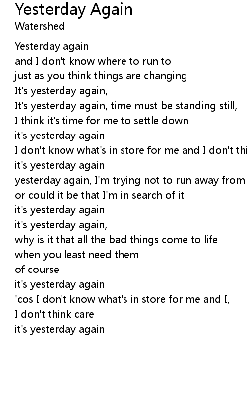 it's yesterday again, |