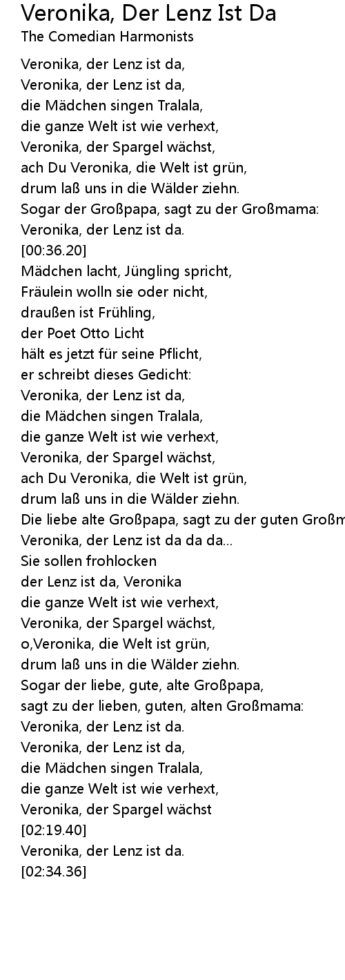 | [01:34.52] | der Lenz ist da, Veronika |