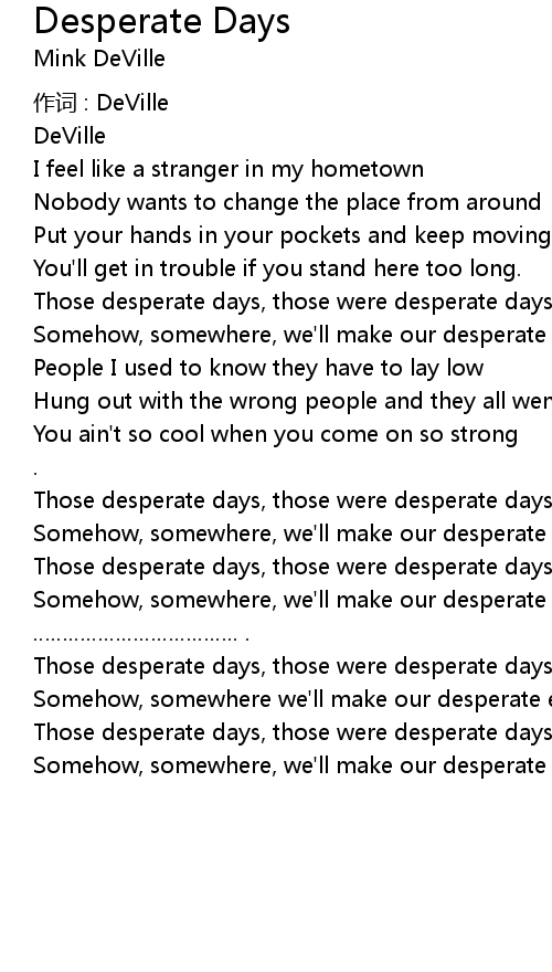 | Somehow, somewhere, we'll make our desperate ways. | |