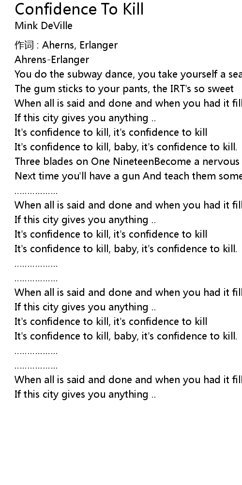 | It' s confidence to kill, baby, it' s confidence to kill. | |