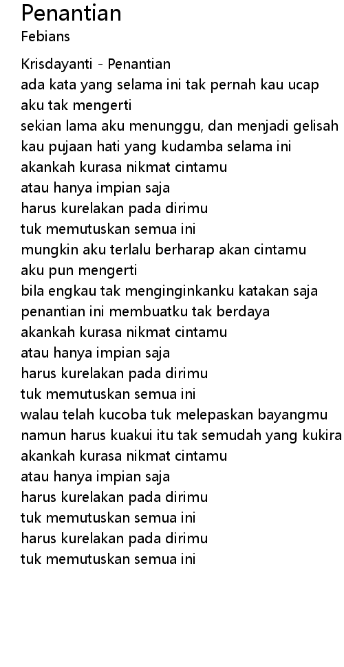 | [00:32.56] | sekian lama aku menunggu, dan menjadi gelisah |