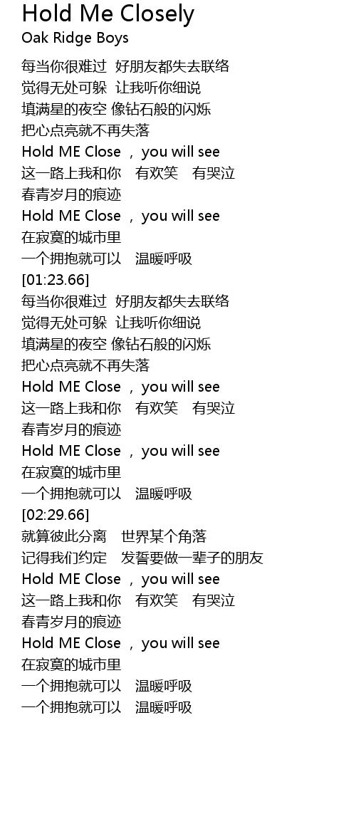| [02:17.41] | Hold ME Close , you will see |