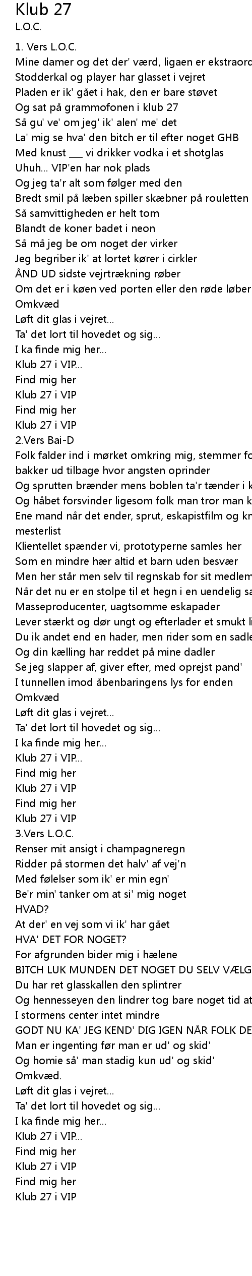 | Og sprutten br nder mens boblen ta' r t nder i klub 27 | |
