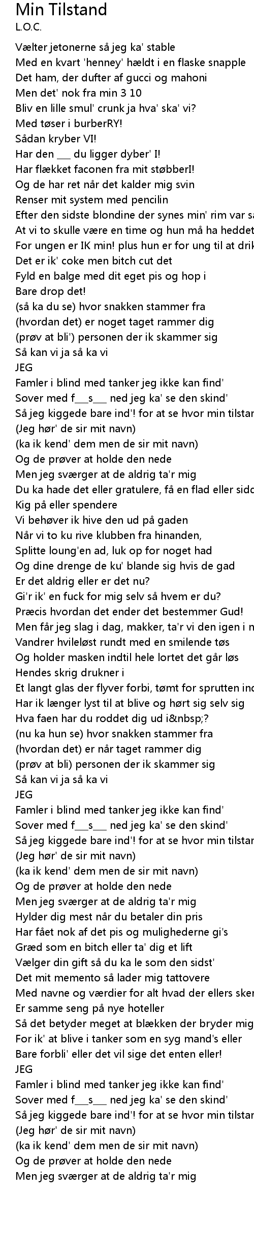 | Så jeg kiggede bare ind'! for at se hvor min tilstand var hen' | |