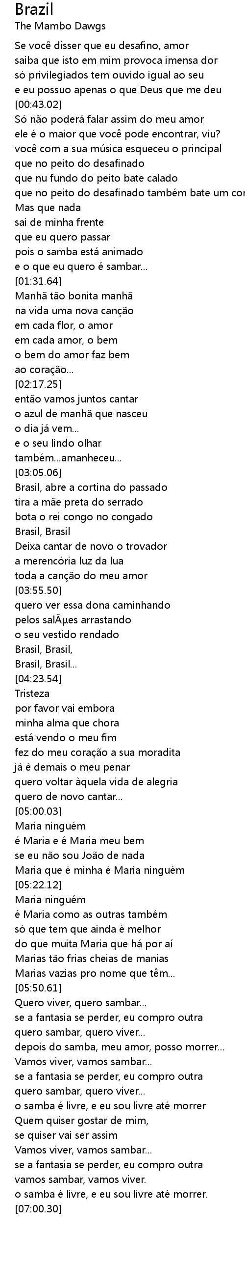 | [06:09.06] | depois do samba, meu amor, posso morrer... |