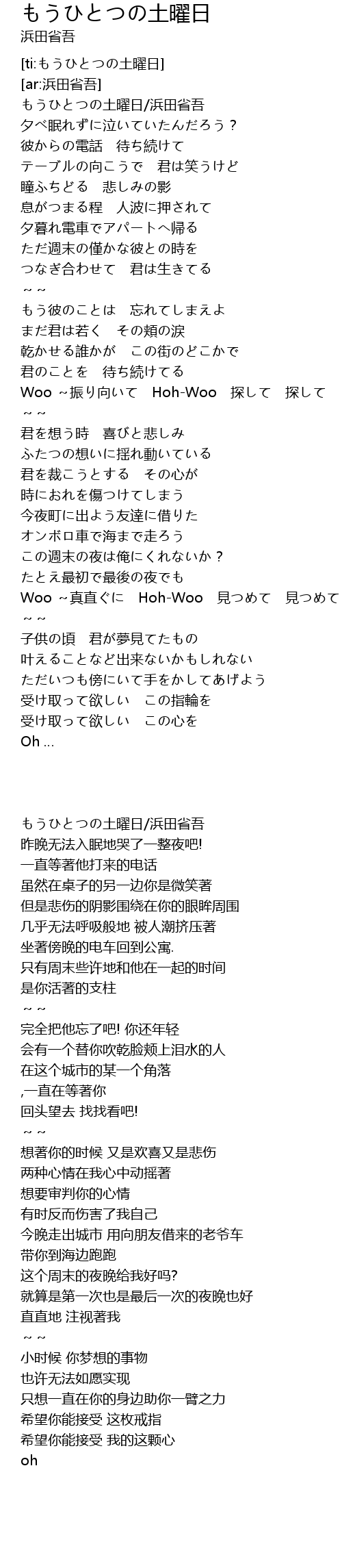 | [00:00.503] | もうひとつの土曜日/浜田省吾 |