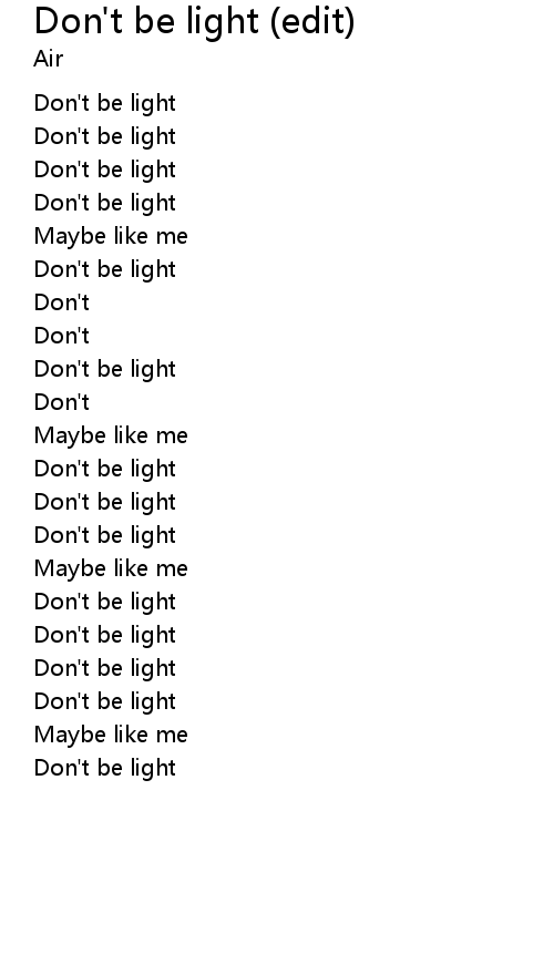 | Song | Don't be light (edit) |