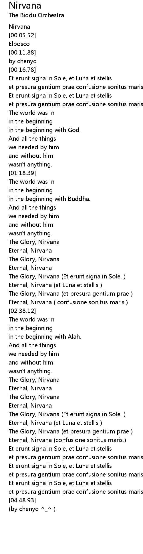 | [02:16.89] | The Glory, Nirvana Et erunt signa in Sole, |