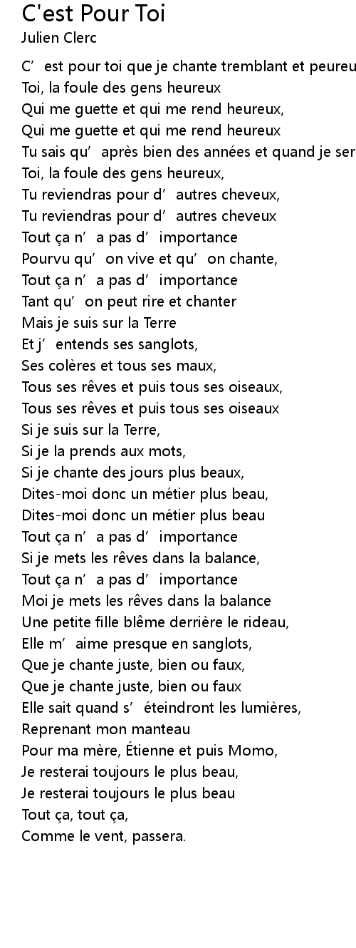 | Song | C'est Pour Toi |