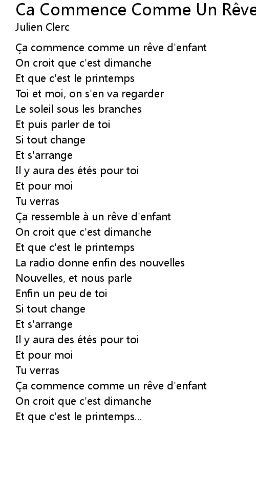 | Song | Ca Commence Comme Un Rêve D'enfant |