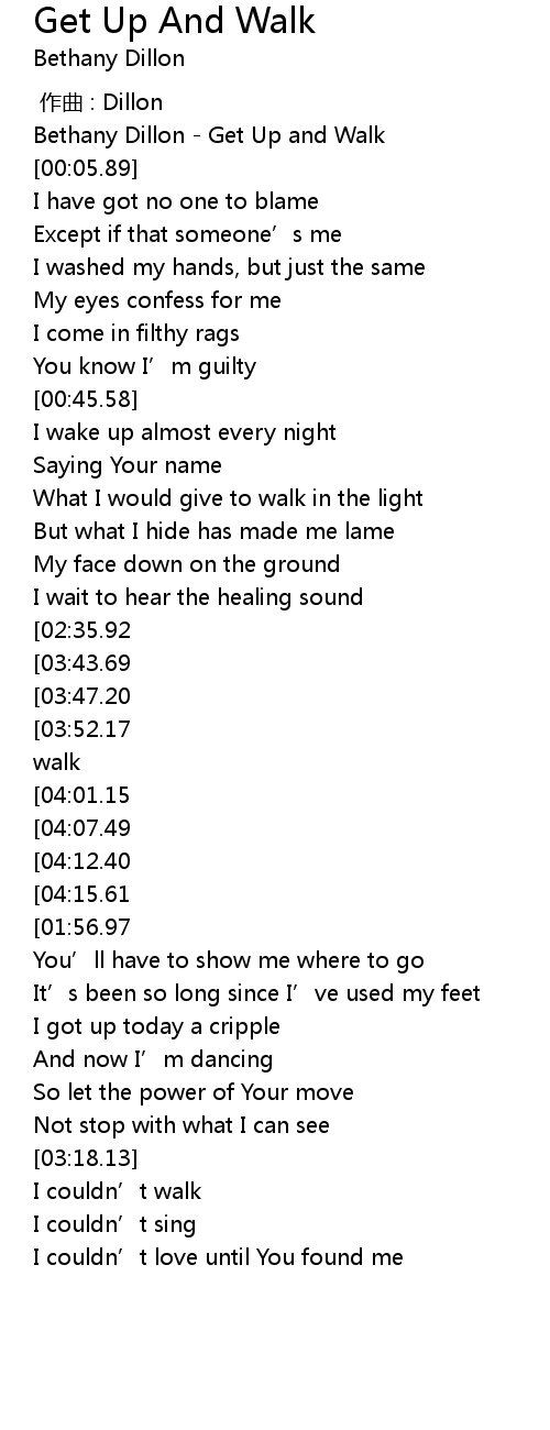 | [00:01.12] | Bethany Dillon Get Up and Walk |