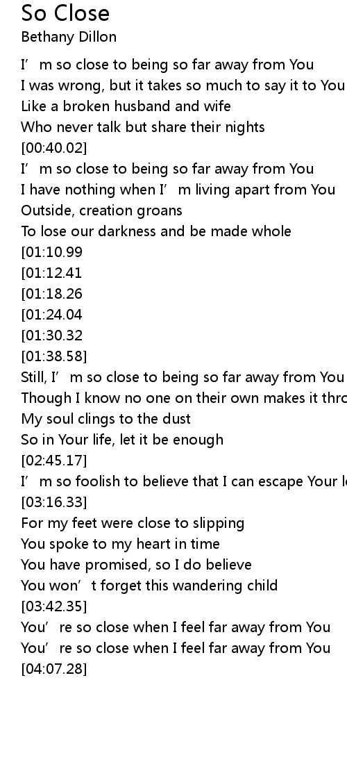 | [01:46.06] | Still, I' m so close to being so far away from You |