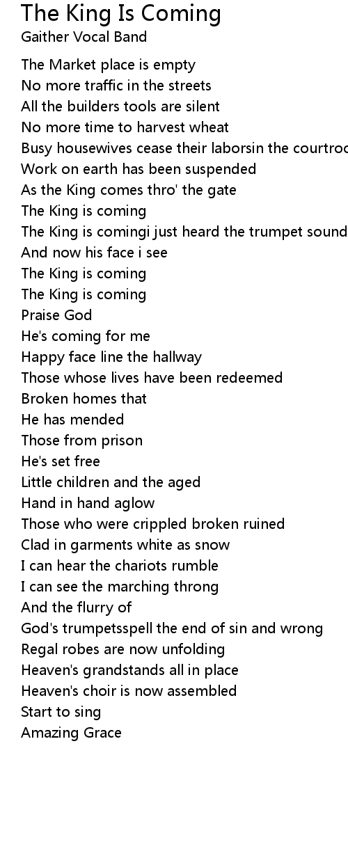The King is comingi just heard the trumpet sounding |