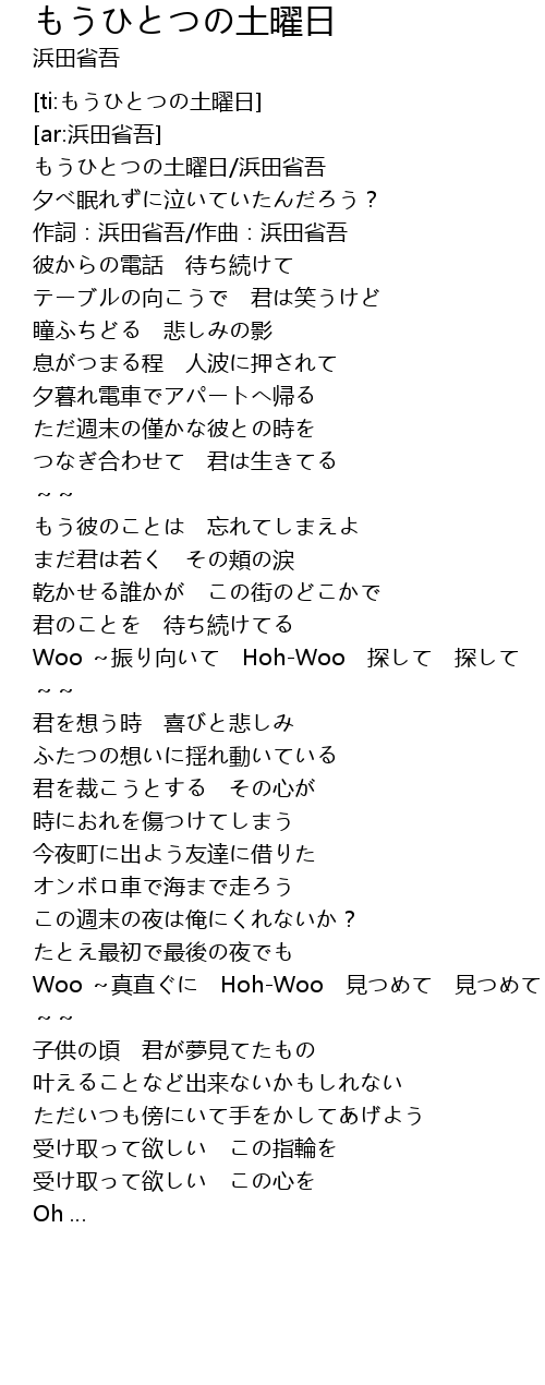 | [00:00.00] | もうひとつの土曜日/浜田省吾 |