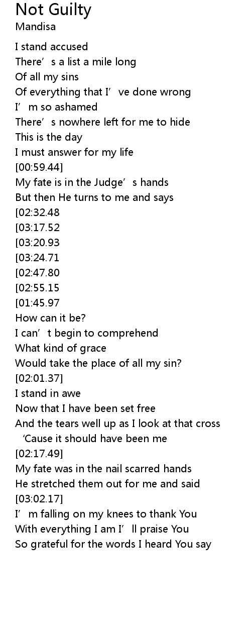 | [03:54.36][02:55.15][01:37.65] | My verdict not guilty |