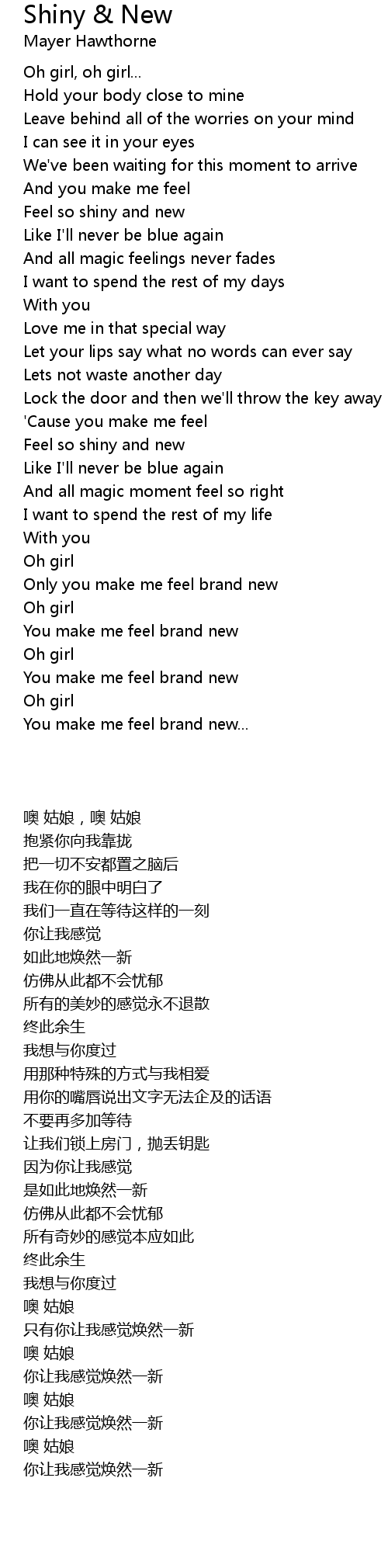 Feel so shiny and new |