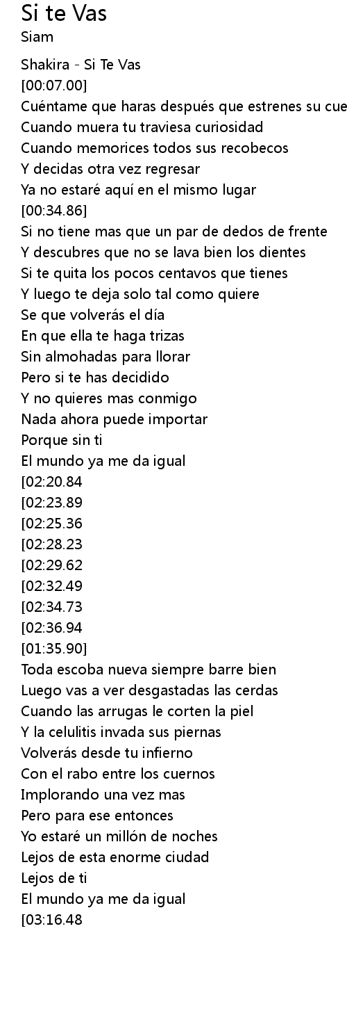 | [02:59.92][02:25.36][01:20.49] | Si te vas, si te vas, ya no tienes |