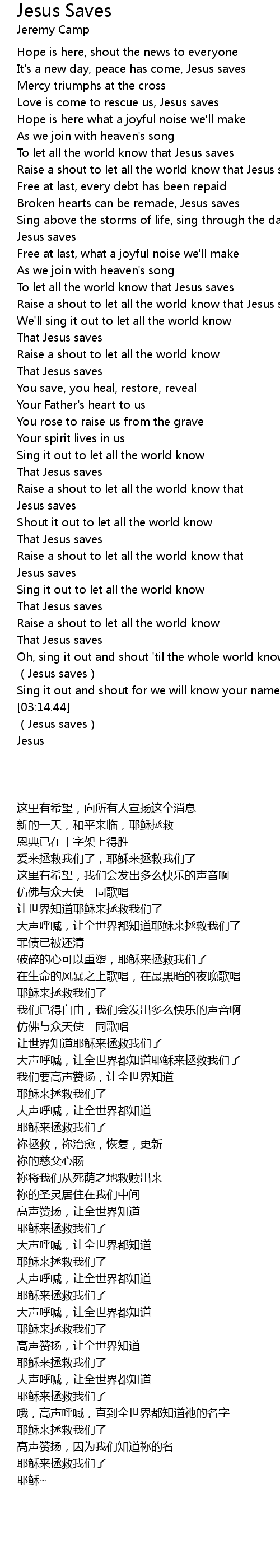 | [03:17.14] | Jesus saves |