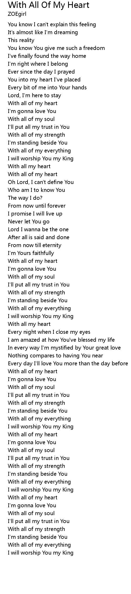With All Of My Heart Lyrics