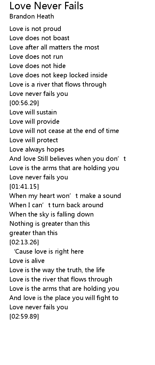 | [00:49.14] | Love never fails you |