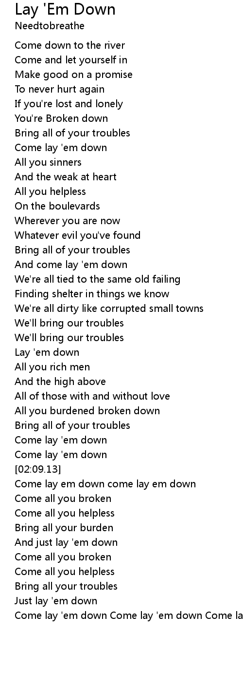 Come lay 'em down Come lay 'em down Come lay 'em down |