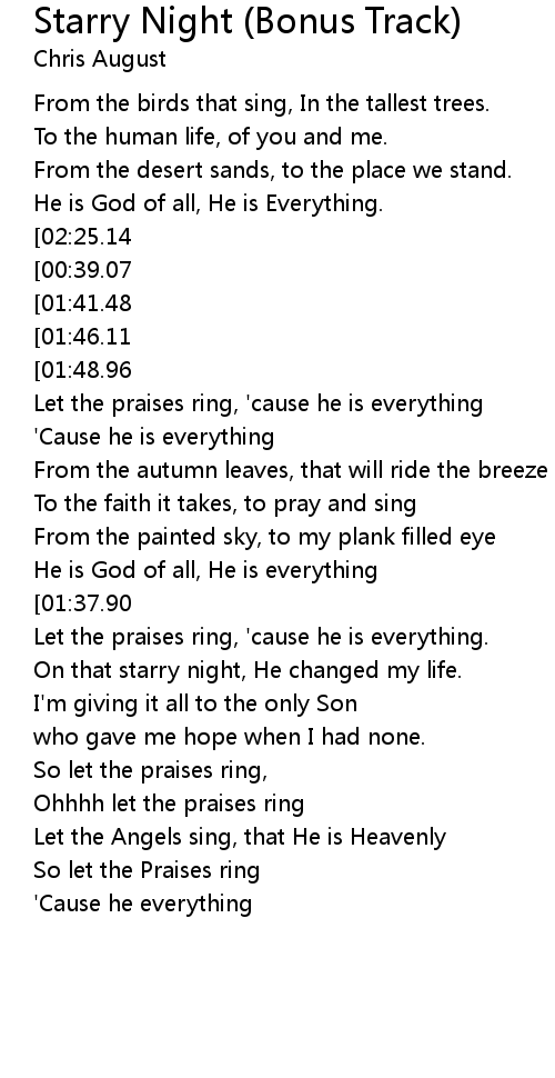 Starry Night (Bonus Track) Lyrics